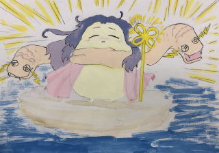 コロナウイルスが一日も早く収束し元の日常生活に戻ることを願い、子どもたちが思うそれぞれのアマビエ制作しました。