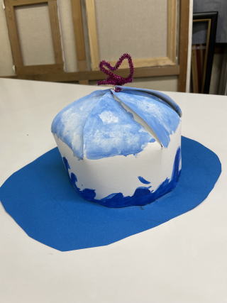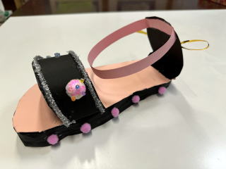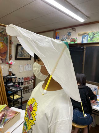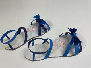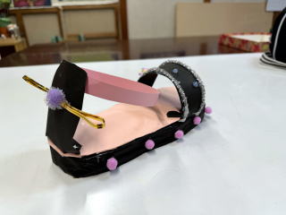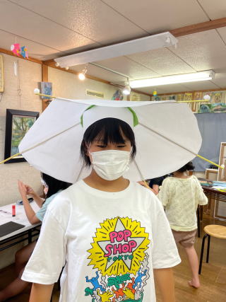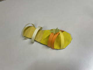 紙を使って、帽子やサンダルを作ってみました。この中から将来の帽子やサンダルのデザイナーとして活躍する子どもたちがいるかも。楽しみですねぇ~