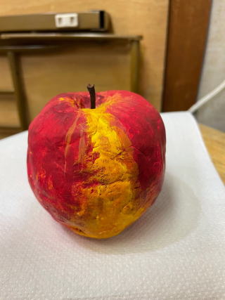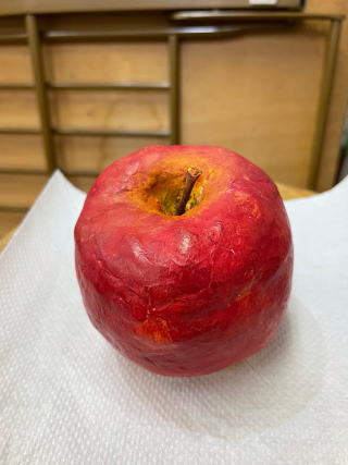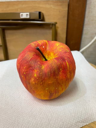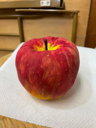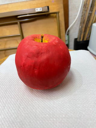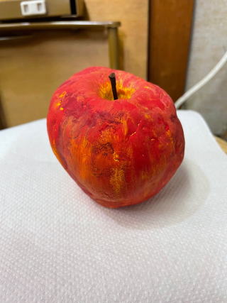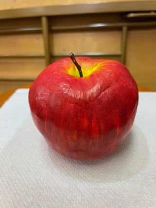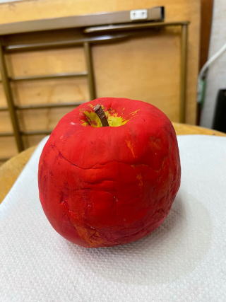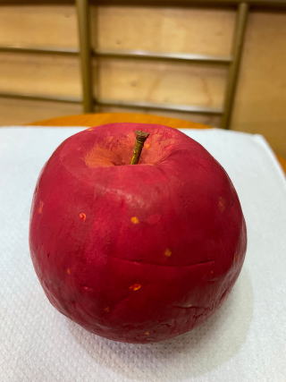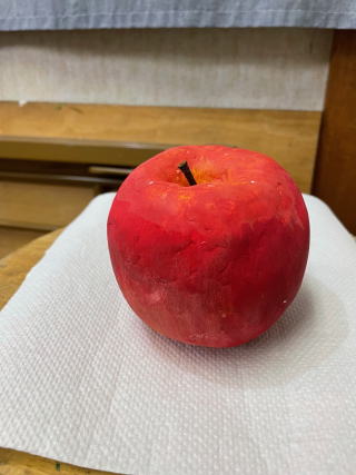 テーブルに置いておいたら、本物と間違えて口にするかも。それくらいリアルなりんご、作れたかな。