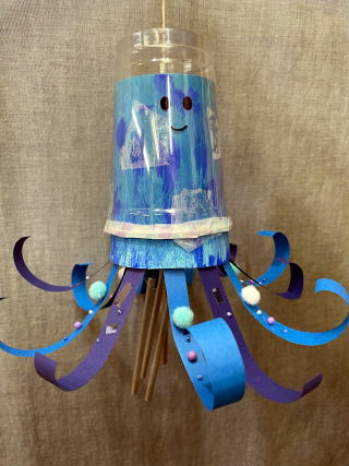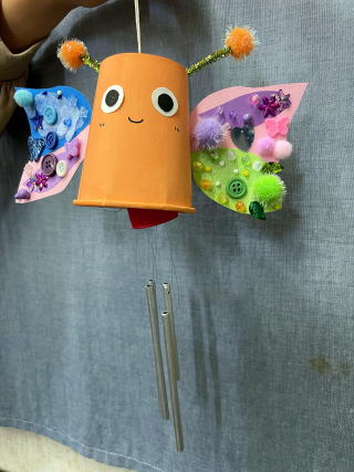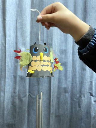 ドアチャイム、風鈴を、紙コップをベースに本体部分を制作し、チャイムはアルミパイプを使って音が奏でられるように工夫した。