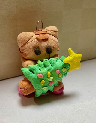 クリスマスツリーに飾れるようなオーナメントを紙粘土で作りました。