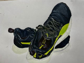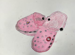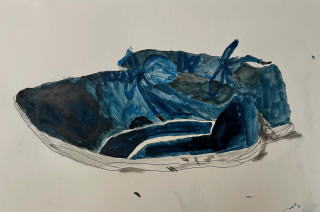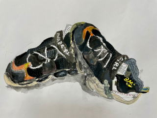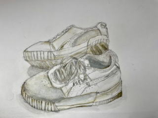 そこで日ごろ外で活動を共にしている履きなれた靴をモチーフとして選んだ。ひも靴のひもの形、模様。縫い糸の色や縫いあとなど細かいところにも目を向けることで観察力をつけるようにした。