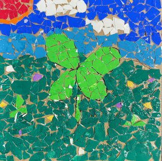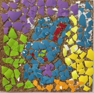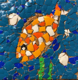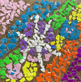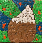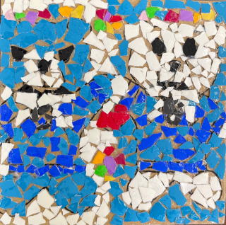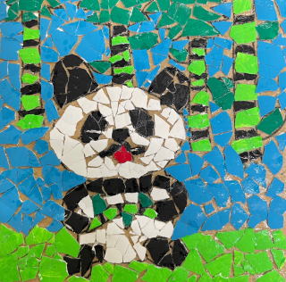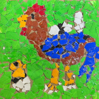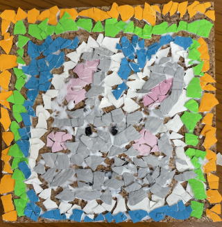 卵の殻にアクリル絵の具で着色し、手で小さく砕いて、下絵を描いた板(10cm×10cm)にボンドで貼りつけました。最後にニスを塗って完成。 大好きな動物、花やアニメのキャラクターなどをモチーフに、作品を作りました。できた作品は、コースターとして使えるし、壁に飾ってもおしゃれなインテリアとして活用できますね。 |