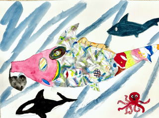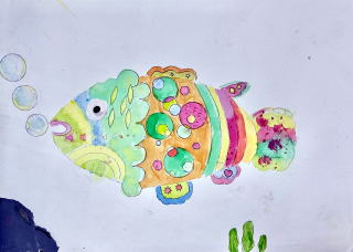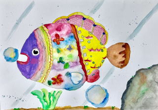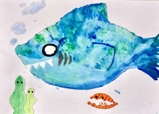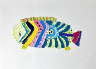 こんな魚がいたらいいなぁ、体の形や大きさ、色、ひれの形など、見たことない魚を描いてみました。